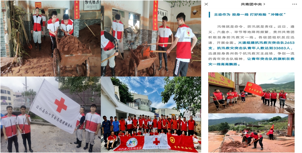 受台风“杜苏芮”影响,遵义市习水县发生洪涝灾害,大量农房、农作物、车辆受损,“红色筑梦,相伴有我”暑期实践团闻“汛”而动,在习水县团委组织下,实践团就地化为青年突击队,队内8人迅速行动,参与到灾后的清淤志愿服务中。踩着齐膝深的淤泥,持续工作7小时,铲土运泥。一天上百次的来回往复,磨破了10双手套,清理出了数百平米的空间,为尽快恢复生产生活环境和秩序贡献了青春力量。抗汛事迹受到社区、红十字会、义工联合会等志愿组织的大力支持和肯定,同时受到共青团中央微信公众平台宣传报道。