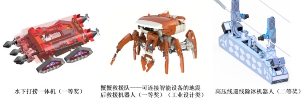 我校选拔赛于今年4月开始筹备,通过DUT学生设计俱乐部开展赛事相关培训工作。在教务处、机械工程学院和创新创业学院的大力支持下,师生们经过不懈努力,共报送16项作品参赛,其中11项作品入围区域赛。最终我校水下打捞一体机团队、蟹蟹救援队—可连接智能设备的地震后救援机器人团队获得国赛一等奖,高压线巡线除冰机器人团队获得国赛二等奖,其他8项作品获区域赛奖。