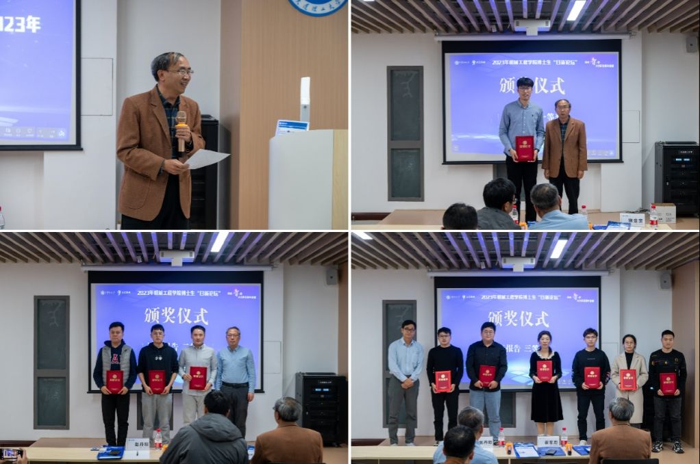 现场评审专家与同学们就报告内容积极提问交流,促进学术积累,激发科研创想,最终产生一等奖1名、二等奖3名、三等奖6名。专家评审机械工程学院褚金奎教授、赵丹阳教授、霍军周教授对汇报人的报告内容给予肯定,期待更多优秀学子以本次论坛为契机,产出优秀成果。