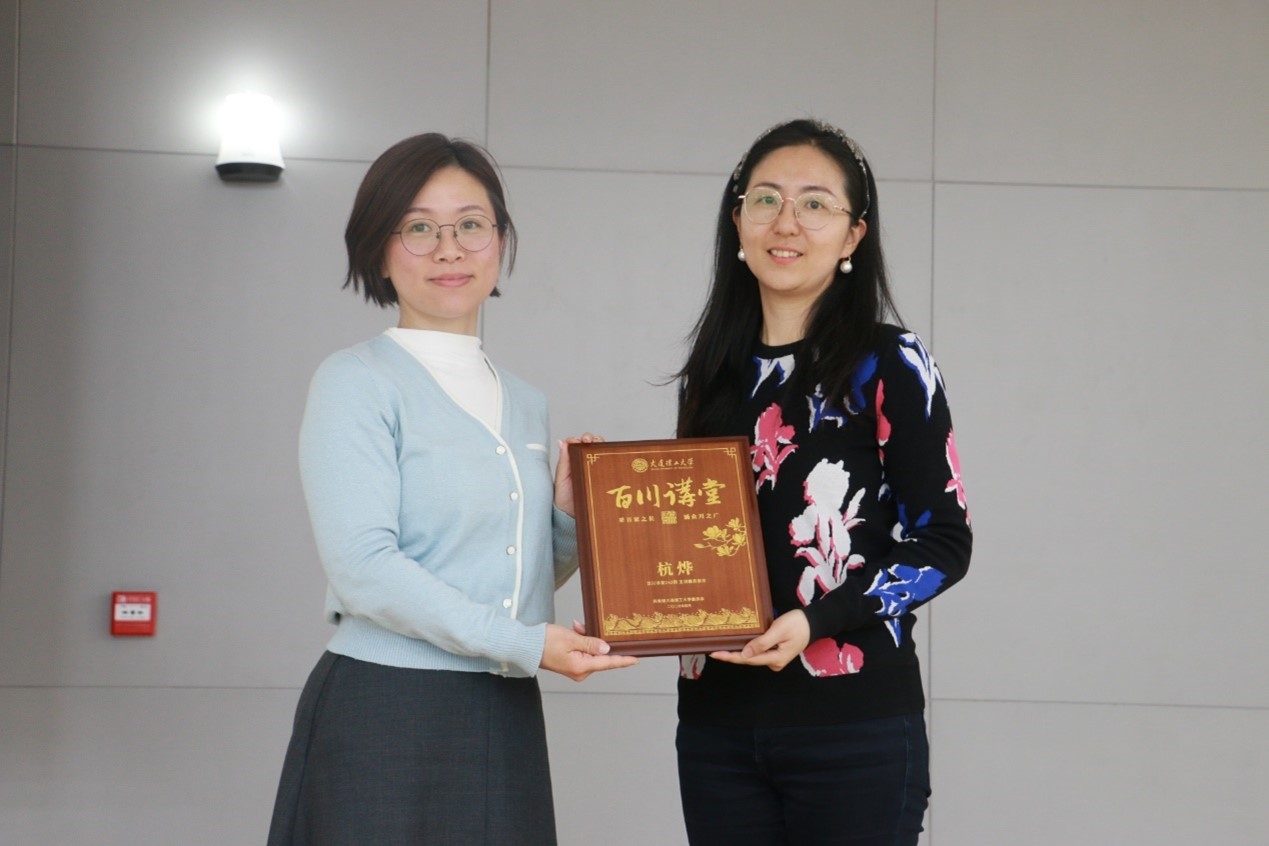 讲座结束后,为表达感谢,校团委书记刘精晶老师为杭烨博士送上“百川讲堂”定制纪念牌。