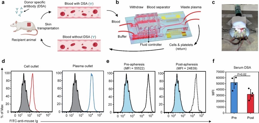 治疗性血液成分单采系统用于小鼠血浆置换,大幅降低引起免疫排斥反应的抗体浓度