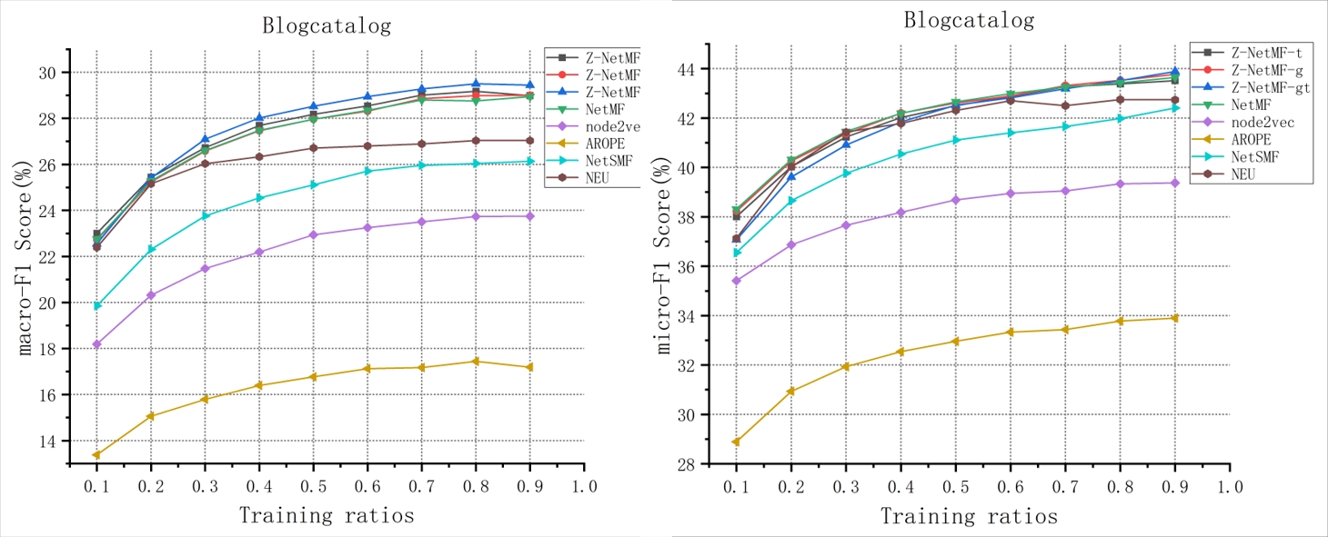 图4 Z-NetMF模型在BlogCatalog数据集上的分类效果