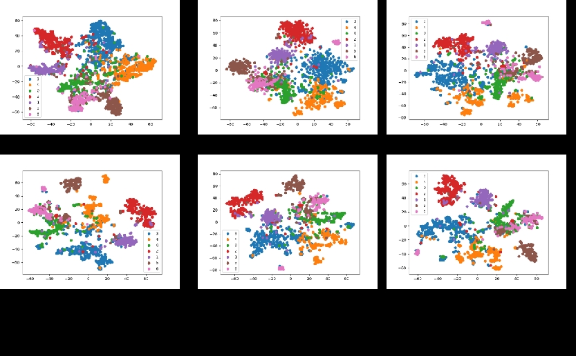 图1 FGND与GCN模型堆叠多层后隐层表示区分度对比(Cora)