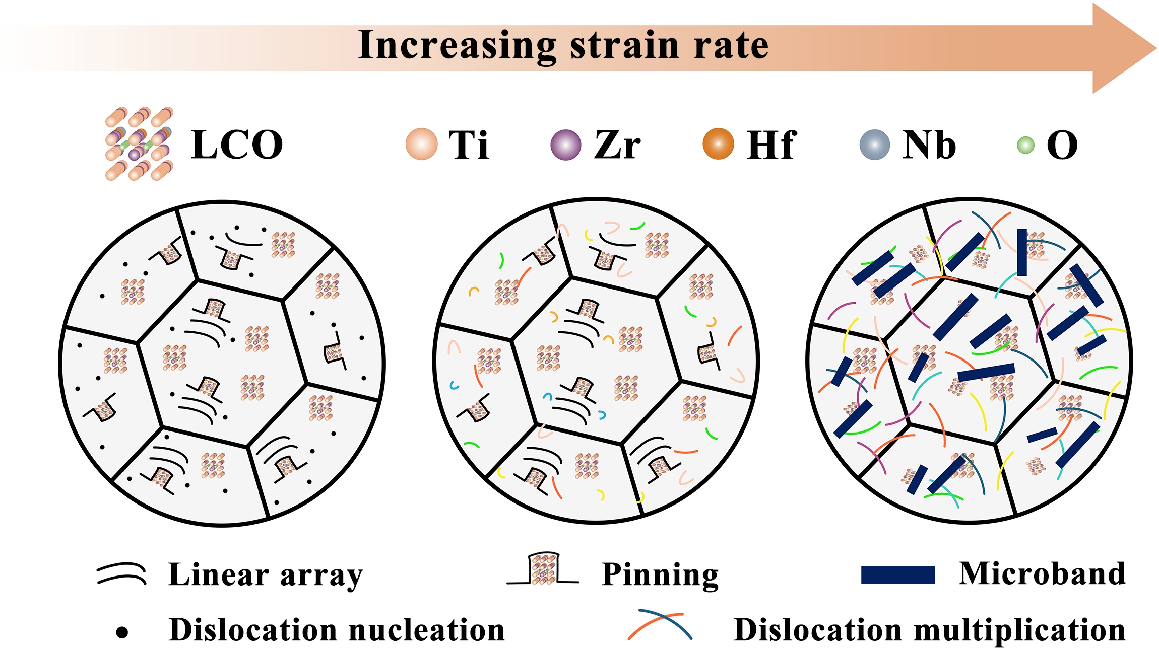 图2.塑性变形机制示意图:局部化学有序促进位错形核与增殖