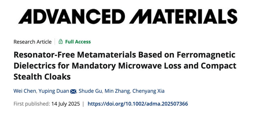人工电磁超材料凭借其精密几何结构对电磁波的调控能力,可实现对传播路径、相位及幅z值等的精确操控,在国防安全领域具有重大战略意义。针对传统谐振型超材料面临的单元面内尺寸与电磁响应强耦合、难以小型化的瓶颈问题,段玉平教授团队提出了一种基于铁磁介质的无谐振单元超材料设计范式。通过“成分-结构二维调制策略”将反射波的振幅与相位进行解耦,实现了相位调控与单元面内尺寸的完全独立,为开发高性能、小型化电磁隐身器件提供了全新的技术路径。研究成果以“基于铁磁介质的无谐振超材料实现强制微波损耗与紧凑型隐身斗篷”(Resonator-FreeMetamaterials Based on Ferromagnetic Dielectrics for Mandatory Microwave Loss and Compact StealthCloaks)为题进行发表。