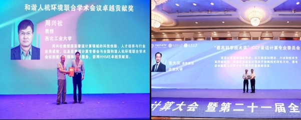 开幕式后进行了普适计算专委和人机交互专委年度奖颁奖典礼。普适计算专委和人机交互专委主任於志文教授和田丰教授分别为两个专委的“年度杰出贡献志愿者”“博士学位论文激励计划”“青年学者激励计划”“和谐人机环境联合学术会议卓越贡献奖”“最高科学技术奖”获得者颁发了荣誉证书。西北工业大学周兴社教授和北京大学张大庆教授发表了获奖感言。随后大会举行了“2025全国通用人工智能创新应用大赛”启动仪式。