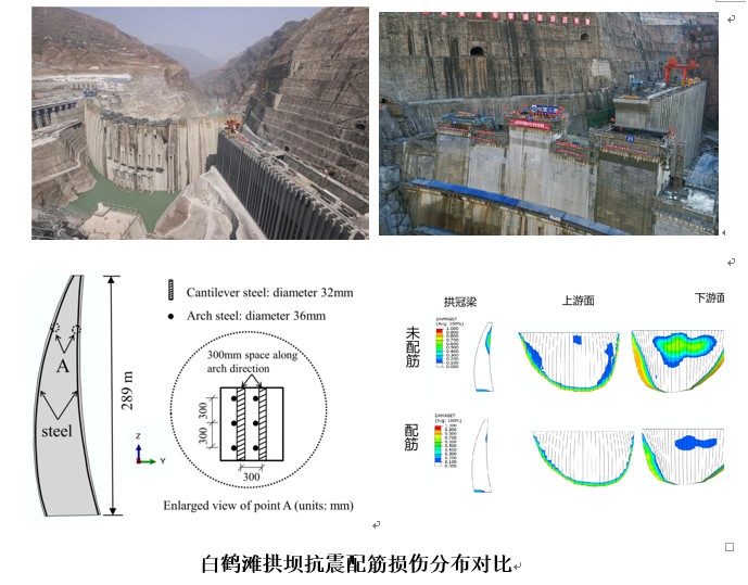 开展了金沙江白鹤滩水电站拱坝配筋及垫座优化等抗震措施研究。结合白鹤滩水电站坝址地形、地质条件,在设计提供的拱坝及垫座体形基础上,将拱坝、地基、库水作为一个系统,为白鹤滩拱坝技施阶段拱坝配筋、拱坝垫座设计以及拱坝-地基系统抗震安全评价提供了理论和技术支撑,研究成果应用到水电站工程技施阶段结构设计中。