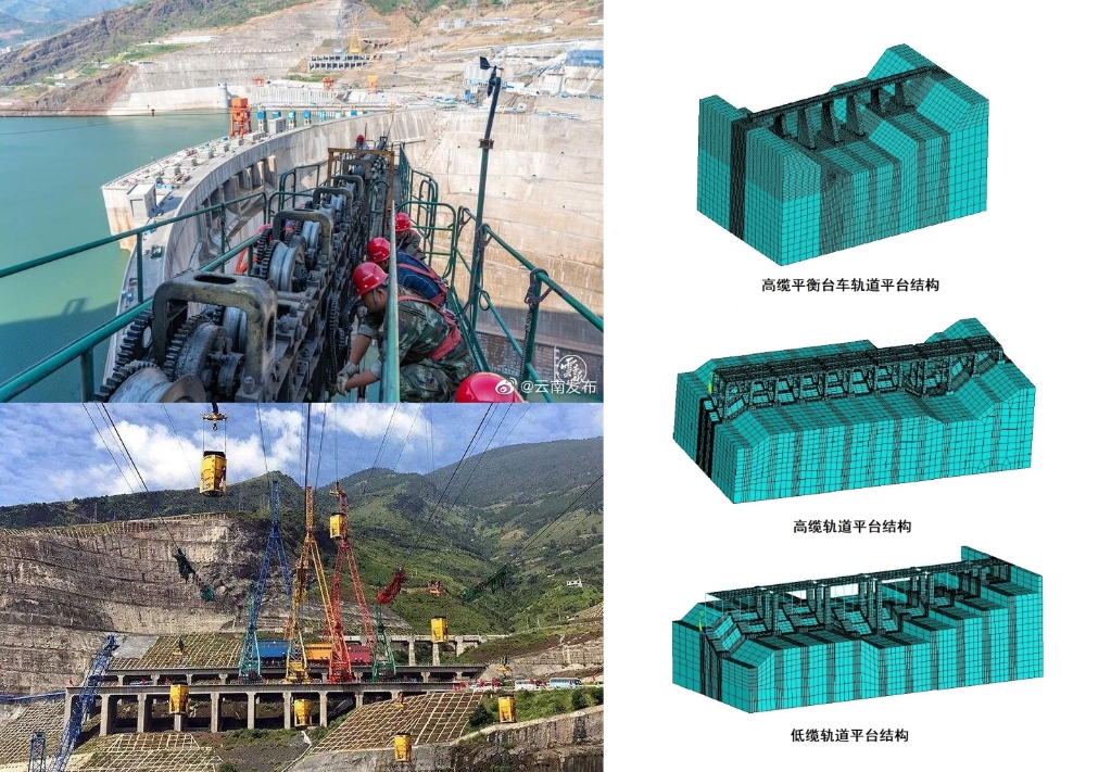 开展了白鹤滩大坝左岸大型缆机平台结构计算。白鹤滩水电站施工用缆机是大型、重要的施工机械,缆机基础具有承受荷载大、活载重复作用次数多、在整个拱坝混凝土施工中的作用极为重要等特点。研究成果为缆机平台的设计和保障大坝坝体浇筑施工安全提供了重要技术支撑。