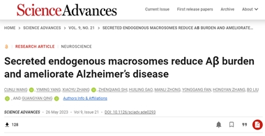 近日,大连理工大学医学部生物医学工程学院刘波教授与中国科学院大连化学物理研究所卿光焱研究员,东北大学高慧玲合作研究,提出了一种治疗阿尔茨海默病的新视角,相关研究成果“Secreted endogenous macrosomes reduce Aβ burden and ameliorate Alzheimer's disease”在期刊Science Advances《科学•进展》上发表,Doi:10.1126/sciadv.ade0293.