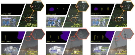 团队在2022年的两项研究成果“Unsupervised Misaligned Infrared and Visible Image Fusion via Cross-Modality Image Generation and Registration”解决了未对齐多模态图像在融合过程中产生的结构扭曲、边缘重影问题,提升了图像融合的鲁棒性;“Target-aware Dual Adversarial Learning and a Multi-scenario Multi-Modality Benchmark to Fuse Infrared and Visible for Object Detection”解决了融合后图像目标不清晰、对下游感知任务不友好等问题,在多种挑战场景下,融合后的目标检测精度较最先进的方法提升10%以上。这一系列科研成果标志着科研团队在多源图像融合难题上的不断突破与创新。