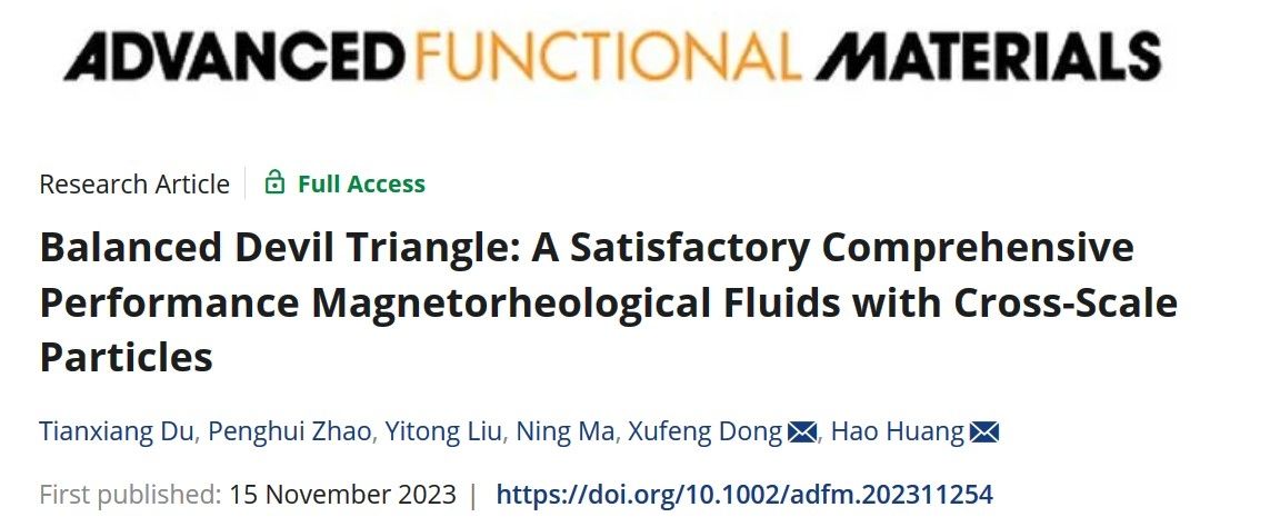 近日,材料科学与工程学院董旭峰教授课题组在新型高性能磁流变液研究上取得突破性进展,相关成果以“平衡的魔鬼三角:基于跨尺度颗粒、具备优异综合性能的磁流变液”(Balanced devil triangle: A satisfactory comprehensive performance magnetorheological fluids with cross-scale particles)为题在材料领域著名期刊《先进功能材料》(Advanced Functional Materials)上发表。研究成果为重要工程结构在复杂振动环境下的智能减振提供一种综合性能优异的智能材料。