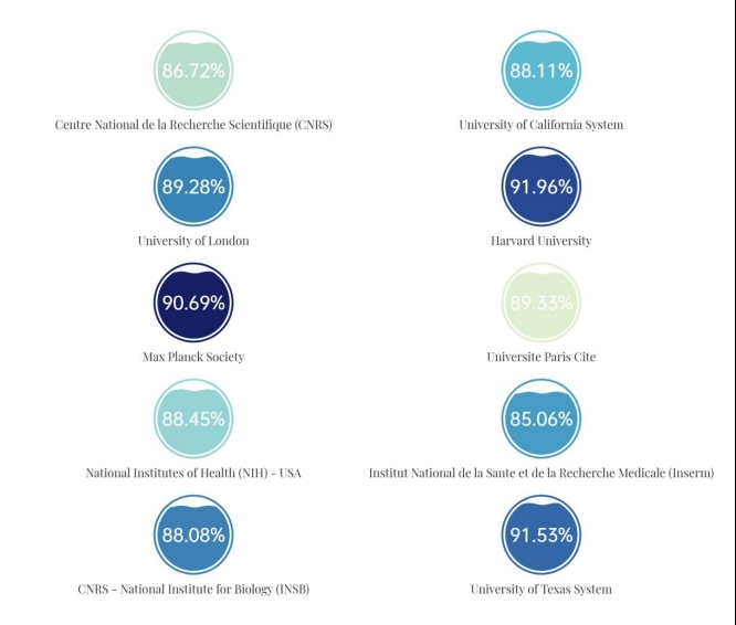 安全、加密和编码(Security, Encryption & Encoding)研究来自5,216个机构,包括大学、科研院所和企业。Top10发文机构分别为: