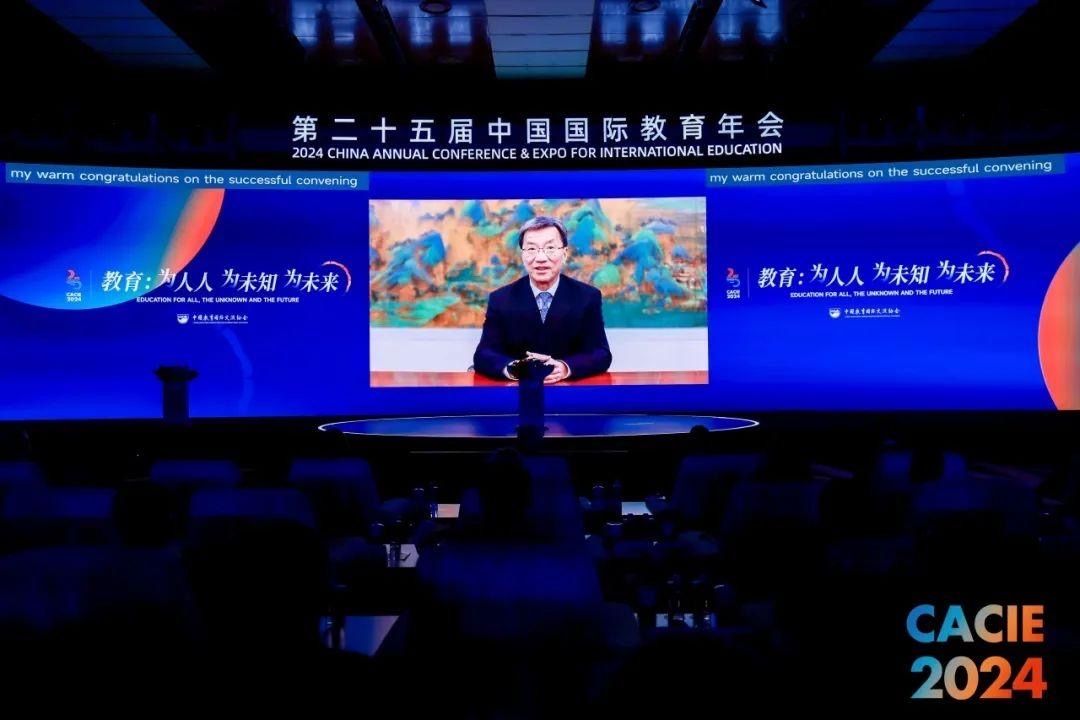 10月31日,年会全体大会开幕。开幕式由中国教育国际交流协会会长刘利民主持。全国人大常委会副委员长、民盟中央主席、欧美同学会(中国留学人员联谊会)会长丁仲礼出席大会并发表开幕致辞。教育部部长怀进鹏通过视频方式向大会致辞。