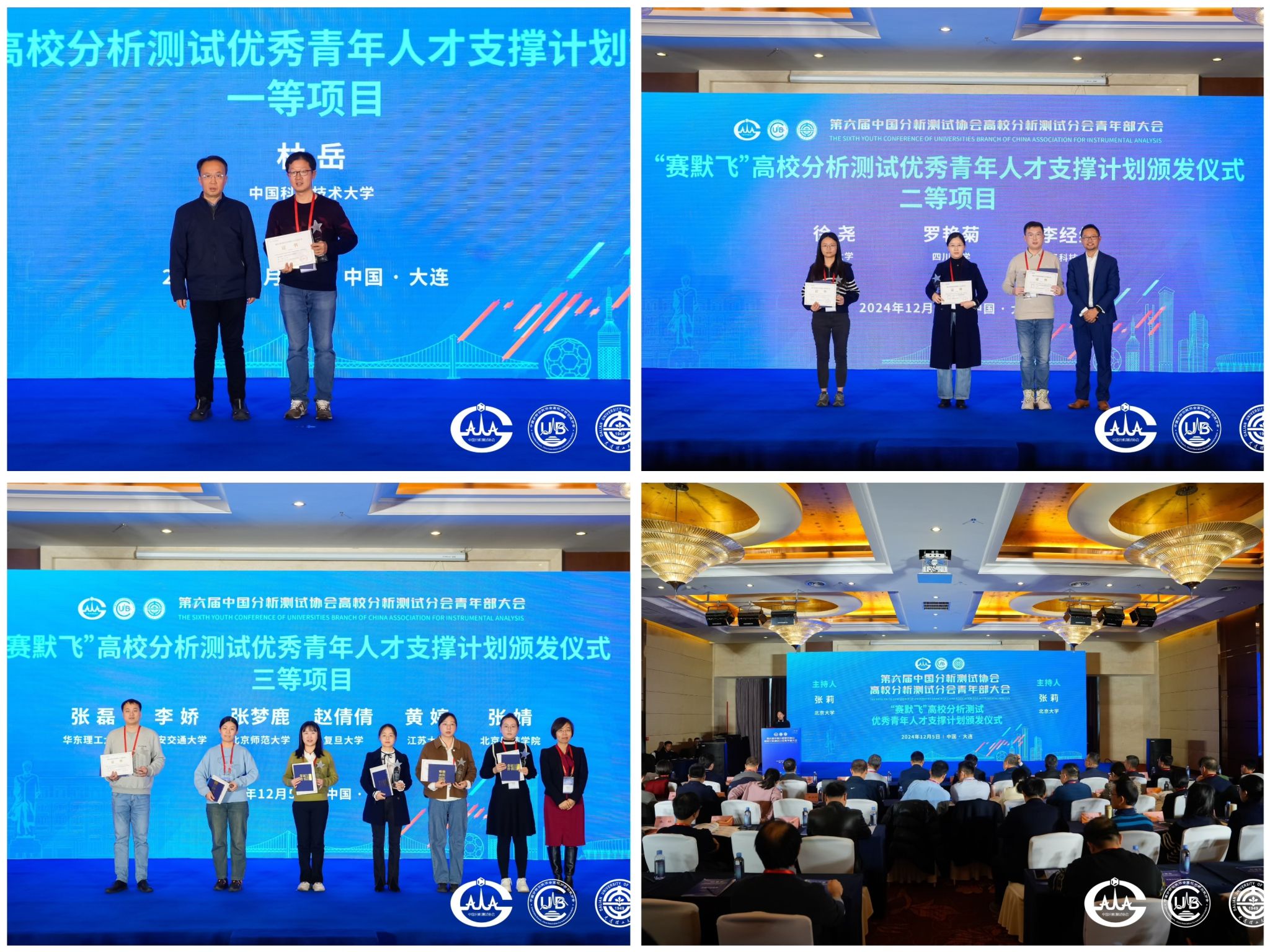 12月4日至7日,由中国分析测试协会高校分析测试分会主办,我校分析测试中心承办的“第六届中国分析测试协会高校分析测试分会青年部大会”在大连召开。本次会议以“分析测试技术助力新质生产力发展”为主题,旨在促进青年分析测试工作者在测试方法研究与技术创新、技术人才的培养与发展、平台管理与资质认定等方面的交流研讨。中国分析测试协会高校分析测试分会主任委员、清华大学李景虹院士,我校校长助理陆安慧教授出席大会。来自全国四十多所高校院所的专家学者以及二十多家仪器公司代表,总计200余人参会。我校分析测试中心主任闫肃主持开幕式。