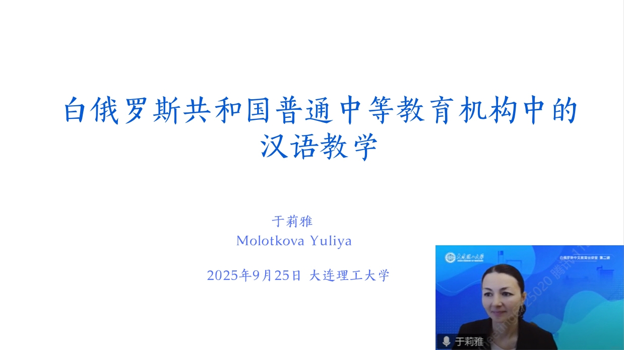 9月至10月期间,在中外语言交流合作中心的支持下,大连理工大学成功举办“白俄罗斯中文教育云讲堂”活动。四场高水平讲座共吸引来自中国-白俄罗斯大学联盟中白语言发展与区域合作集群子联盟和白俄罗斯中文教育协作体成员单位的360余名师生参加。本次活动作为白俄罗斯中文教育协作机制的重要实践,通过统筹国内外专家资源,以“国内海外协同联动”模式,深化国际中文教育理论研究,提升各成员单位国际中文教育建设能力,推动白俄罗斯中文教育实现高质量发展。