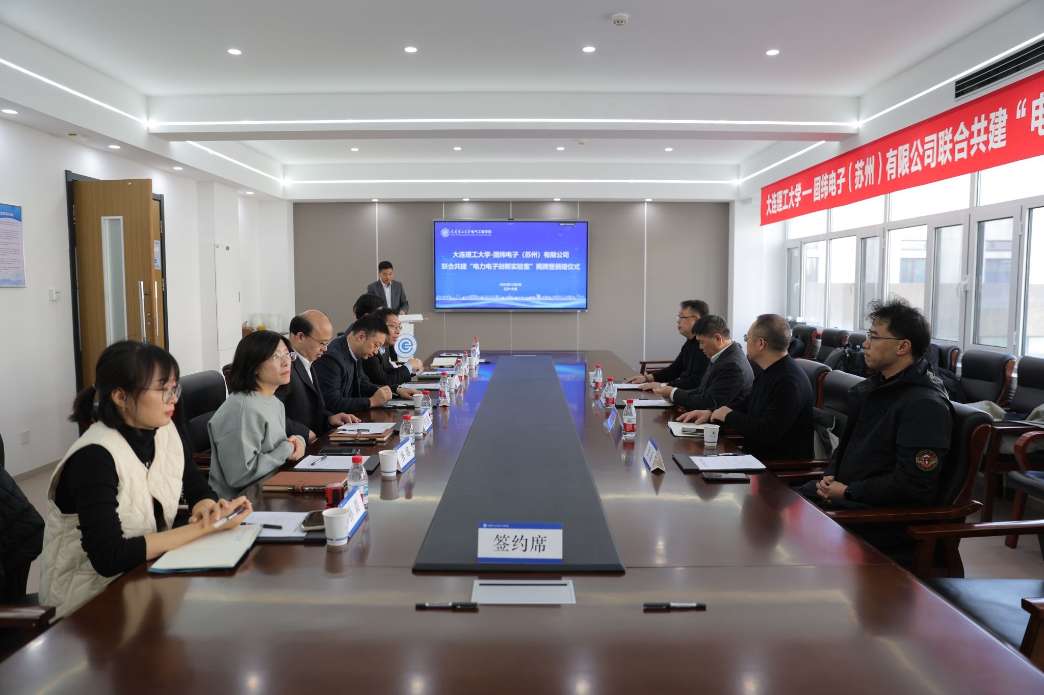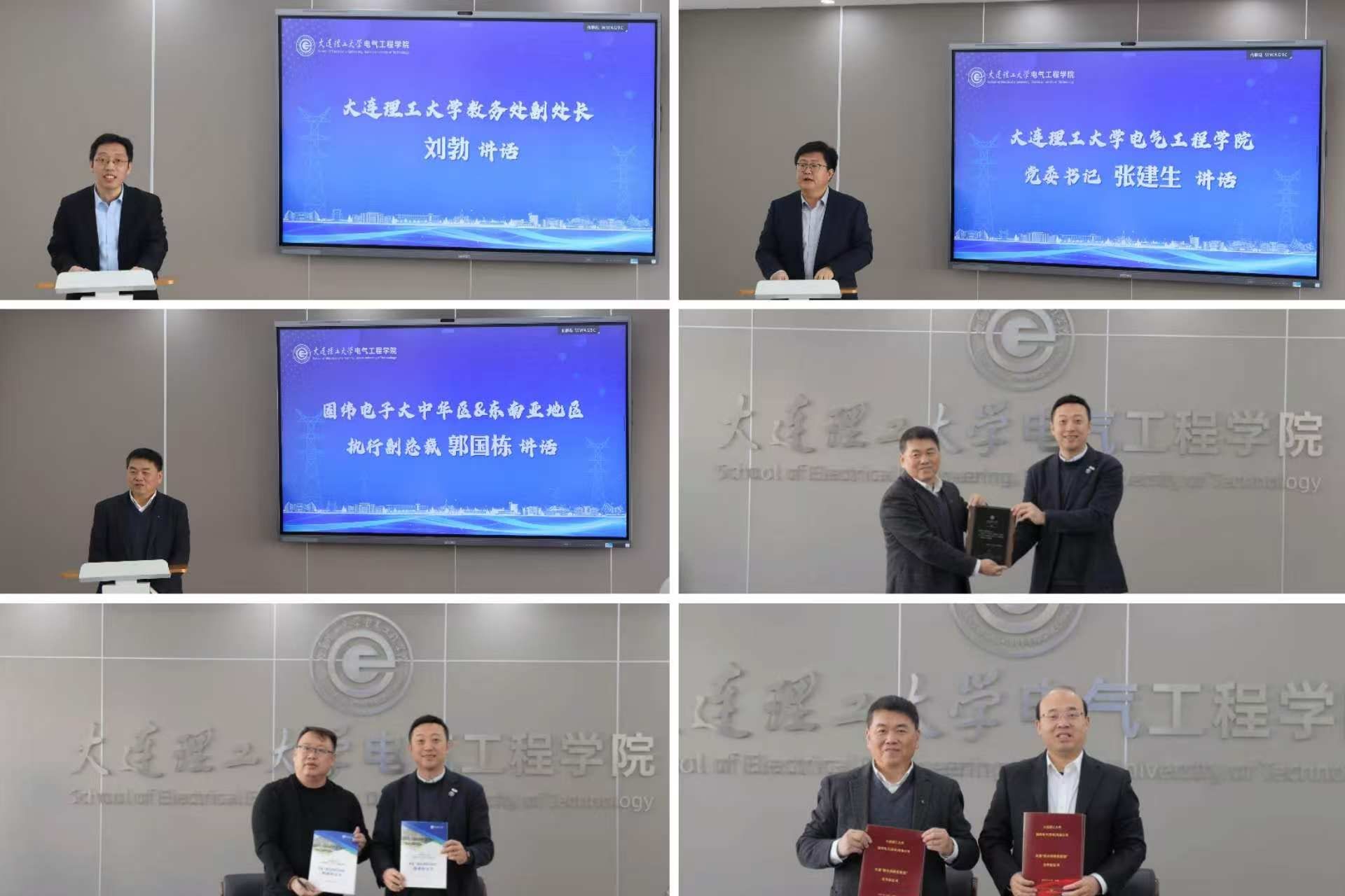 郭国栋、李卫星分别代表固纬电子和电气工程学院签署电力电子创新实验室合作协议。根据协议,固纬电子将为实验室捐赠20套精密电子仪器设备,为学院教学科研提供专业支撑,助力校企人才培养有效衔接。张洪柱、李晓丹分别代表固纬电子和大连理工大学教育发展基金会签署捐赠协议,李晓丹为捐赠方颁发捐赠纪念牌。与会领导共同为“电力电子创新实验室”揭牌。