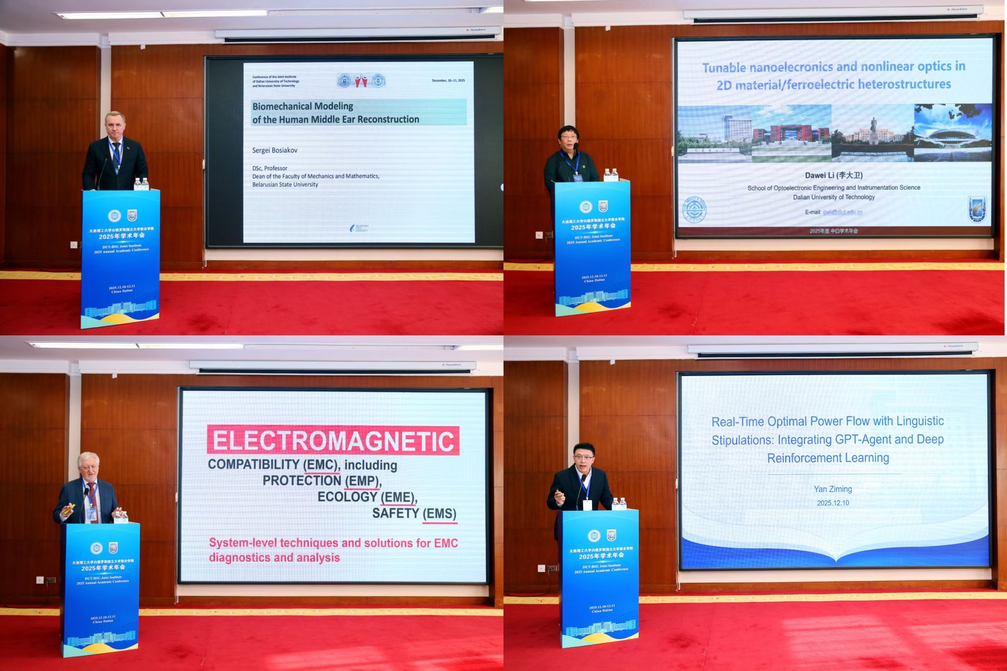 为全面深化中国与白俄罗斯在科技创新、学科建设及多层次人才培养领域的务实合作,12月10日至11日,大连理工大学与白俄罗斯国立大学联合学院以“深化科教协同,共赋卓越发展”为主题举办2025年中白学术年会。来自大连理工大学、大连工业大学、白俄罗斯国立大学、白俄罗斯国立信息与无线电大学、俄罗斯杜布纳联合原子核研究所等国内外高校和研究院所的80余名专家学者前来参会。我校总会计师冯宝军、力学与航空航天学院院长阎军、白俄罗斯国立大学力学数学学院院长谢尔盖·波夏科夫、大连工业大学和白俄罗斯国立工艺大学联合学院院长陈宇出席会议并讲话。会议开幕式由中白学院直属党支部书记、院长季顺迎主持。