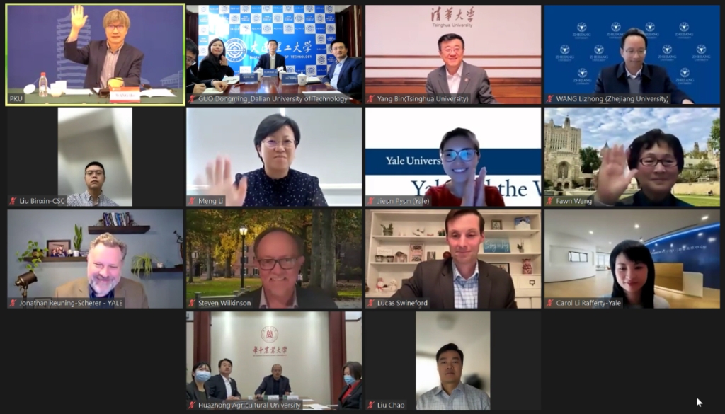 12月6日上午,以“数智时代的教与学”为主题的耶鲁—中国大学校长线上交流活动顺利举办,郭东明校长出席活动并作主题报告。该活动由国家留学基金管理委员会主办,北京大学承办。国家留学基金管理委员会、耶鲁大学、清华大学、北京大学、浙江大学、华中农业大学校领导及专家参会,我校科学技术研究院、国际合作与交流处、网络与信息化中心相关负责人一同参会。