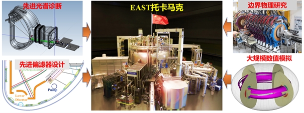 中国科学院等离子体所拥有我国自行设计研制的国际首个全超导托卡马克装置EAST,是我国最重要的核聚变能研究所。EAST装置近些年创造了多项世界纪录,包括:2021年5月实现可重复的1.2亿摄氏度101秒和1.6亿摄氏度20秒等离子体运行(位列2021年国内十大科技新闻之首),2021年12月创造了世界上托卡马克装置高温等离子体运行的最长时间1056秒,2023年4月实现世界上最长时间可重复的高约束模式403秒等离子体运行。我校物理学院拥有国家重点学科等离子体物理,是国内重要的核聚变研究单位,近些年承担了一大批国家重要科研项目,包括科技部磁约束核聚变能研究专项、基金委重点项目、杰青和优青项目等,总经费2亿余元。物理学院同等离子体所紧密合作,在先进偏滤器设计、大规模集成模拟、托卡马克光谱诊断和边界物理方面作出重要贡献,助力EAST创造了多项世界纪录。