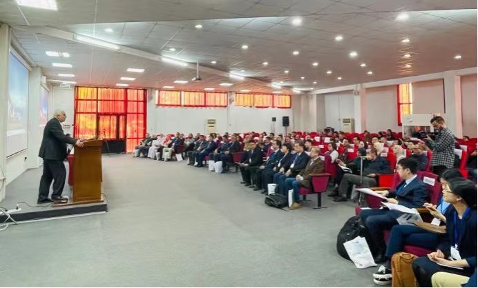 工程实地考察结束后,项目组应邀参与中国港湾阿尔及利亚有限责任公司与阿尔及利亚胡阿里·布迈丁科技大学联合举办“绿色港口·智慧港口”专题技术交流活动,彭云副教授和徐星璐博士进行主题演讲。胡阿里·布迈丁科技大学是阿尔及利亚最好的大学之一,学校校长出席本次会议,表达了对本次中阿学术交流活动的高度重视和肯定。阿尔及利亚公共工程部、交通部、环境部等部委,阿尔及利亚海洋研究所LEM等当地政府部门与学术界约100人参加本次活动。