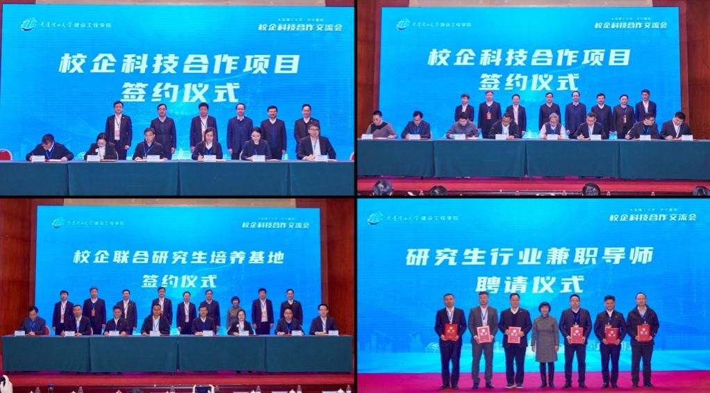 会上,建设工程学院与中交集团签署了总经费1128万元的科研项目合同9项,与7家单位签署校企联合研究生培养基地协议,并颁发专业学位研究生行业兼职导师聘书。