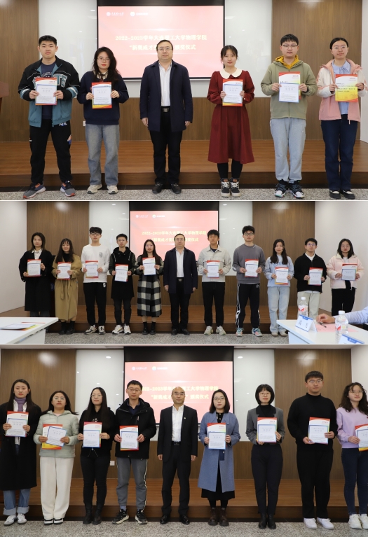 捐赠仪式结束后,举行了2022-2023年“新奥成才奖学金”颁奖仪式。刘敏胜和物理学院党委书记于长水为获奖学生颁奖。