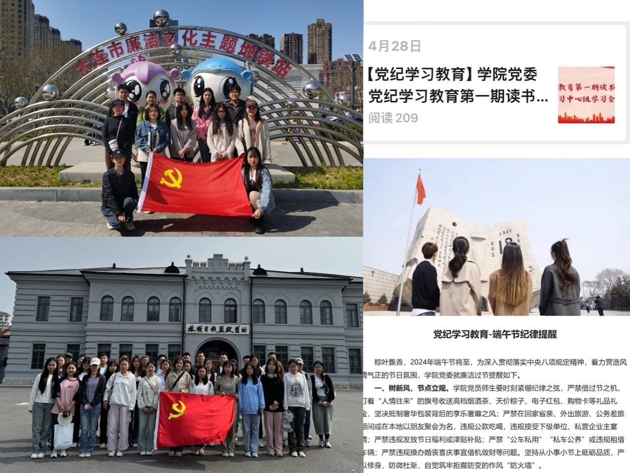 学院党委还开展了系列活动,引导各支部结合专业特色,开展了形式多样的主题党日活动。学院支部走进大连市廉洁文化主题地铁站、“九·一八”历史博物馆、旅顺日俄监狱旧址博物馆以及参与模拟法庭审判违纪案例等,让师生在参与中受教育、在体验中长才干。