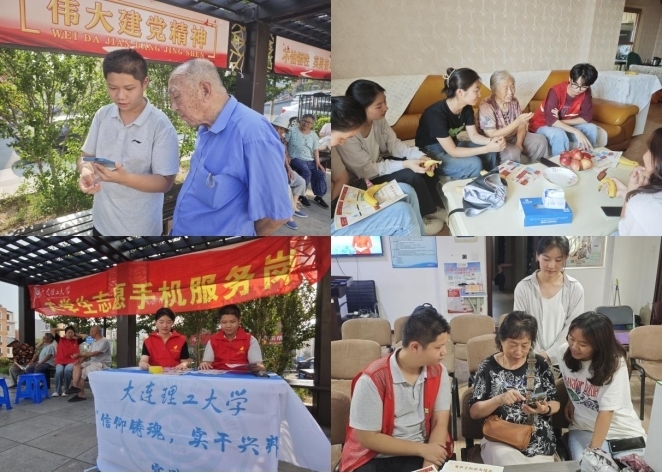 “信仰铸魂,实干兴邦”暑期社会实践团走进兴盛社区、新新社区,走访独居老人。通过设置手机志愿服务岗、发放传单等方式,为老人们解决手机使用中的问题。实践团成员们发现,随着信息化时代与老龄化时代的逐步并行,智能手机在老年群体中变得越来越不可或缺,科技发展让老年生活变得更加丰富多彩。