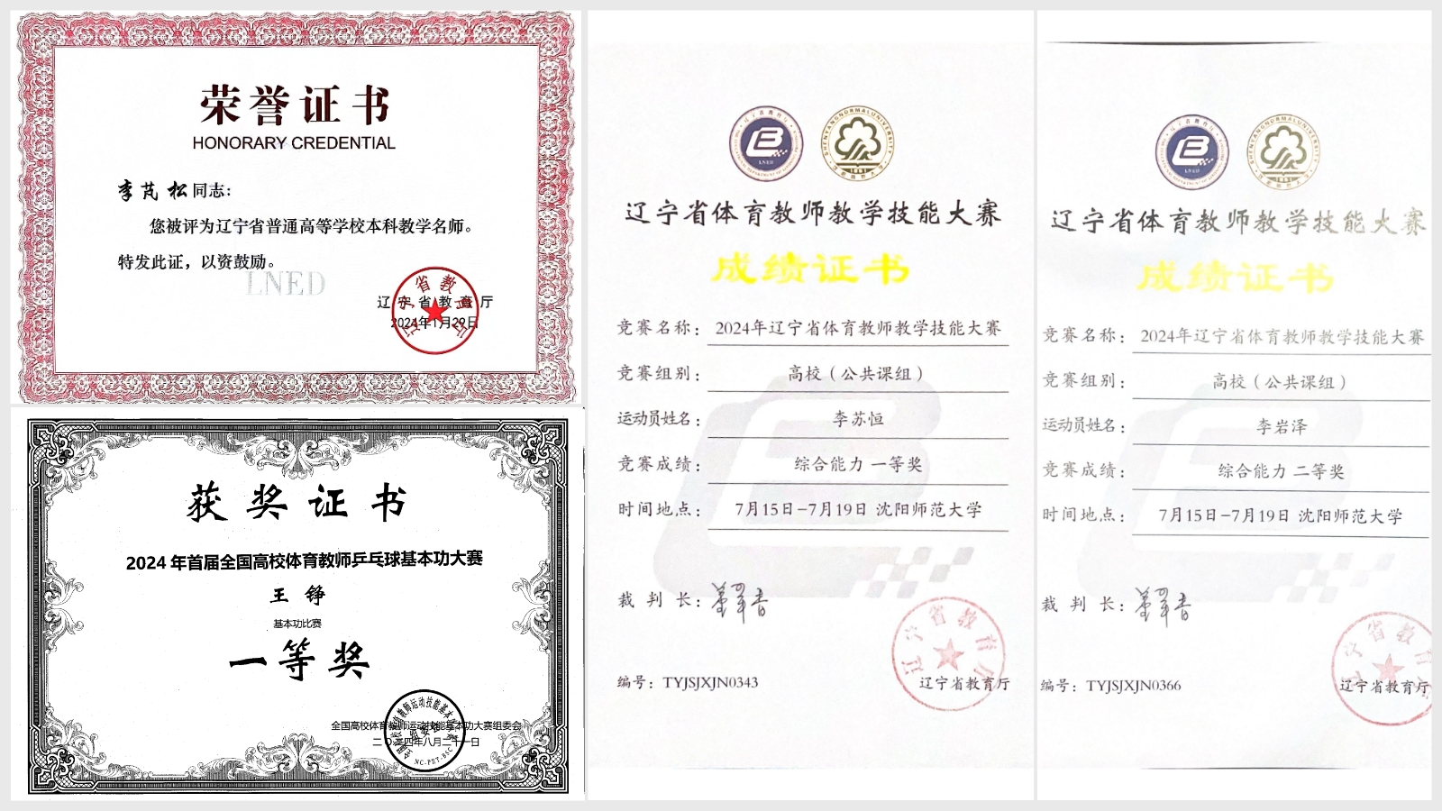 坚定走好新时代党的组织路线,提升基层党组织建设质量,形成齐抓共管教师思想政治建设和师德师风建设的工作格局,树立优秀党员典型示范,大力弘扬教育家精神,提升教师教书育人素养。2024年上半年,学院教师李芃松获评辽宁省普通高等学校本科教学名师、王铮获得首届全国高校体育教师乒乓球基本功大赛一等奖、李柏、朱焱获得大连市高层次人才青年才俊称号、李苏恒、李岩泽分别获得辽宁省体育教师教学技能大赛一等奖和二等奖、杨雨龙获得校教学质量优秀奖。