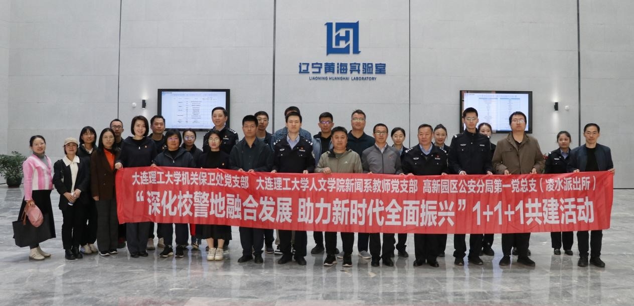 保卫处党支部、人文学院新闻系教师党支部、高新园区公安分局第一党总支(凌水派出所)共同前往大连市英歌石科学城调研参观,详细了解了辽宁黄海实验室的建设现状、未来目标等。四方就党建经验、科技创新、行业发展、人才培养等方面进行座谈交流,共同探讨协同育人、产教深度融合、科技人才共享等方面的创新体系建设,为后续合作交流奠定了基础。
