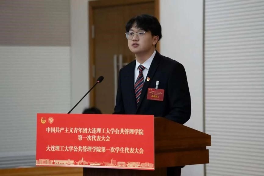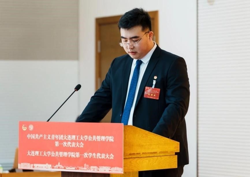 徐晨代表中国共产主义青年团大工公共管理学院委员会作工作报告。