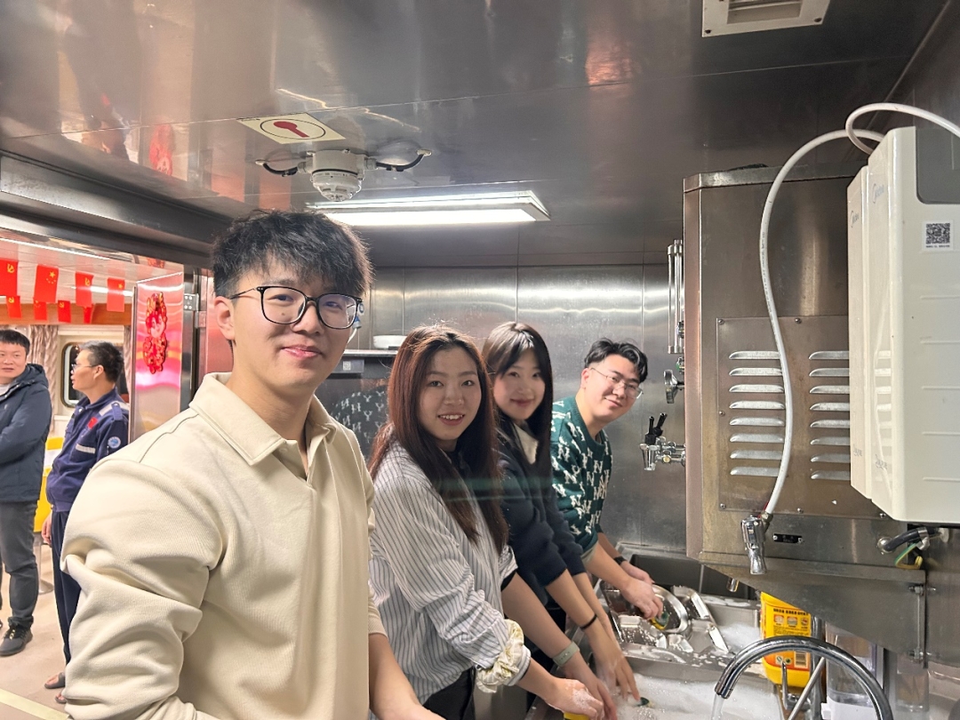 除海洋相关课程外,同学们共同学习了中国海洋大学新闻中心总编辑李华昌老师讲述的图片拍摄基础技能及实践要点,学习海上摄影的构图、光线、角度等,并对特定场景拍摄的注意事项有了初步了解。此外,科考团学生与全船学生共同参与餐后餐盘清洗、食堂打扫等工作,以劳育美,以美促劳,树立主人翁意识,与美丽海洋“双向奔赴”。