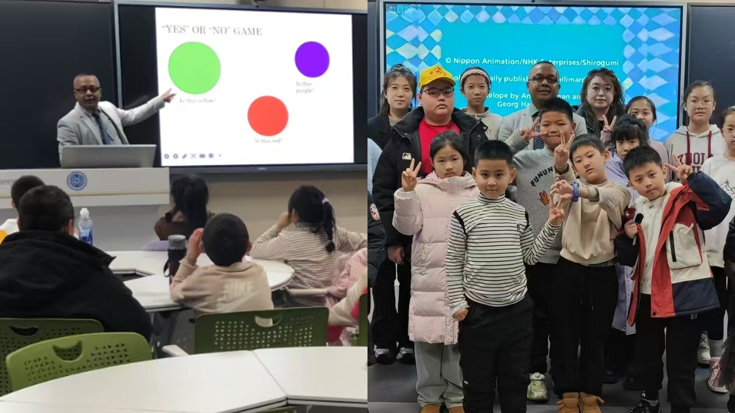 在体验大学外教课程时,小学员们积极与外籍教师互动交流,在轻松愉快的氛围中拓宽了国际视野,感受多元文化的魅力。