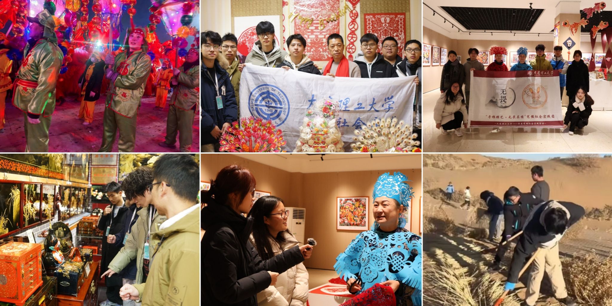 三支文化实践团在传统与现代的碰撞中寻找答案。“寻根探艺术”团队深入庆阳香包绣坊,记录八旬非遗传承人李淑琴“针脚里绣出百年吉祥纹”的坚守,在西安扎染工坊,学生们浸染蓝靛时惊叹:“《诗经》里的‘终朝采蓝’原来藏着低碳智慧!”“材起非遗·槐香晋韵”团队跋涉三晋大地,从东湖醋园“夏伏晒、冬捞冰”的古法酿造,到孝义皮影幕布后的“十指翻飞演尽忠奸”,他们用镜头记录濒危技艺,撰写五万字资政报告呼吁“让推光漆器纹样走进工业设计”。抱“材”归乡寒假实践团积极探索甘肃非遗文化“社火”的数字化创新与八步沙林场冬季植树技术的实践:成员亲身体验舞狮、舞龙和秧歌等形式,挖掘其中内涵,体验沙画以及沙漠植树,为乡村振兴与生态治理提供青年智慧,提供大工智慧。