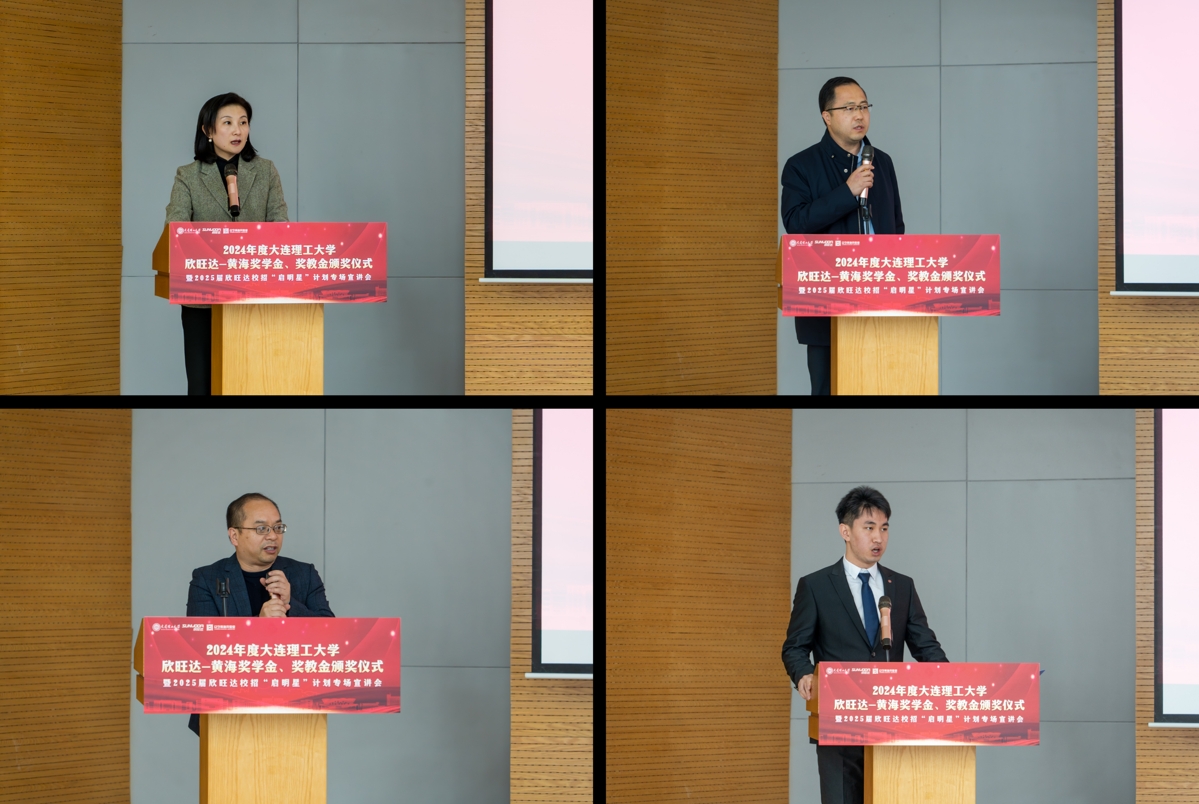 颁奖仪式上,金玲宣读了大工欣旺达-黄海奖学金、奖教金获奖师生名单,双方领导共同为获奖师生颁发获奖证书。