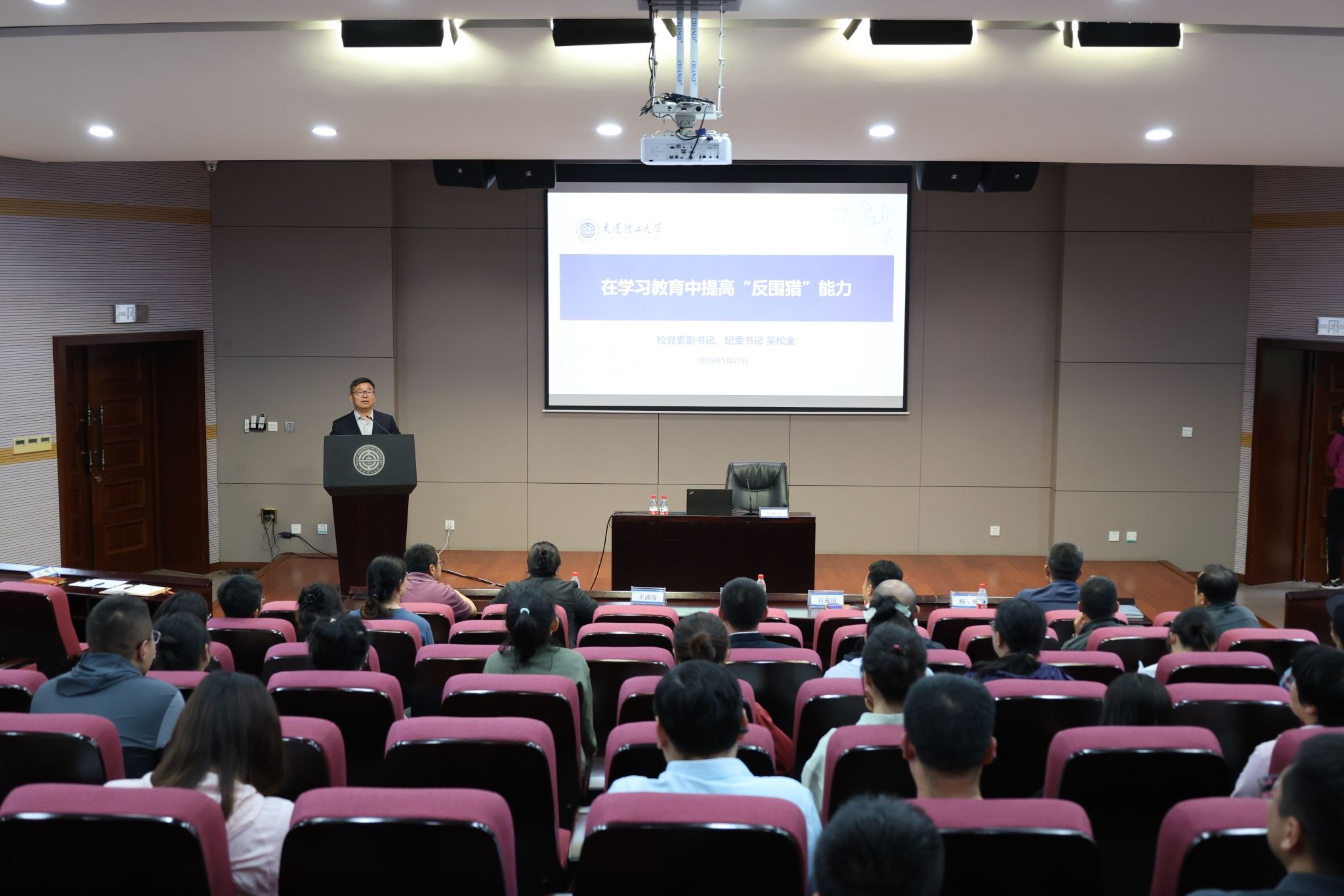 学校党委副书记、纪委书记吴松全以《在学习教育中提高“反围猎”能力》为题作报告,通过真实案例揭示“围猎”与“被围猎”的风险隐患,引领与会人员深化对中央八项规定精神的理解。他强调,要做好“四早”监督,将纪律教育与事业发展深度融合,以作风建设新成效筑牢学校高质量发展根基,让党员干部真正“受警醒、明底线、知敬畏”。