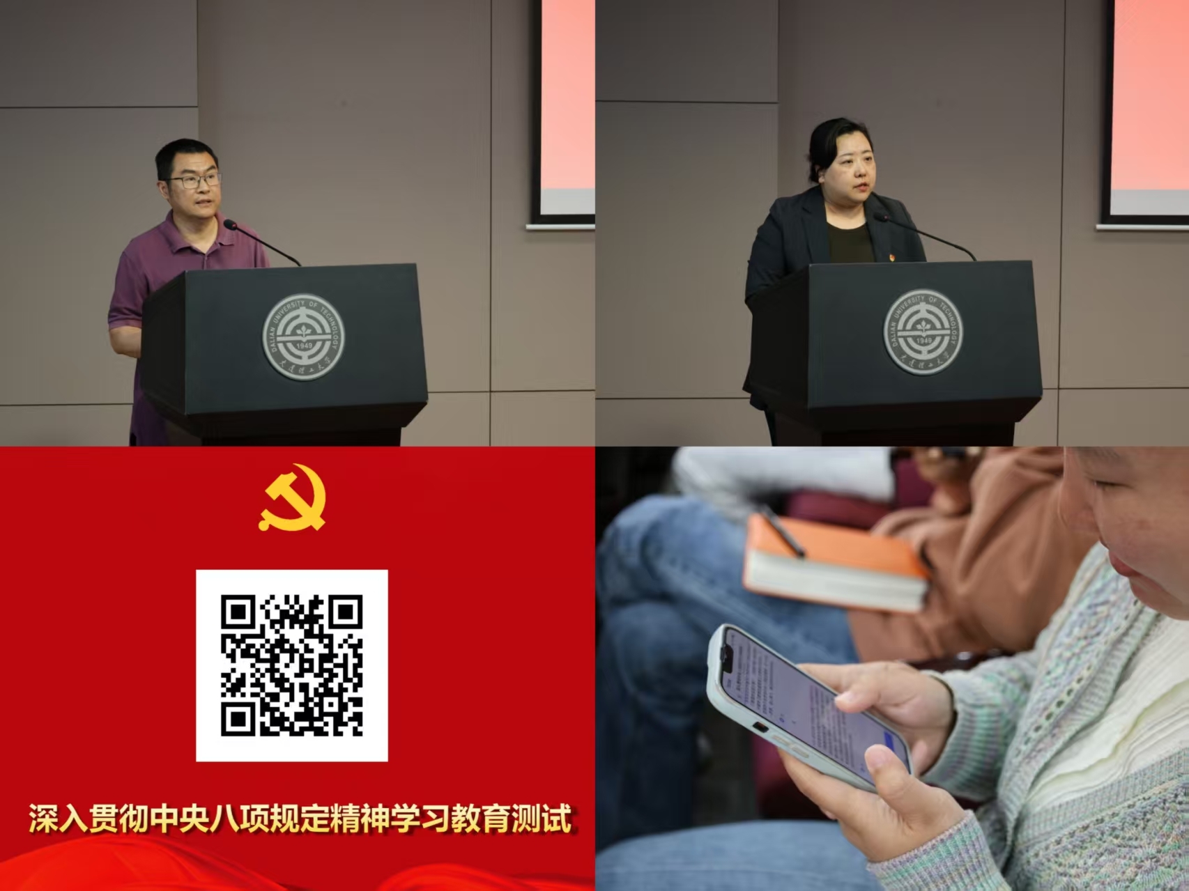 后勤党委副书记、纪委书记田琳传达学校警示教育会精神。全体参会人员参加学习教育测试,通过扫码答题的形式,深化对《习近平关于加强党的作风建设论述摘编》及中央八项规定精神的理解,以考促学、以学促行。