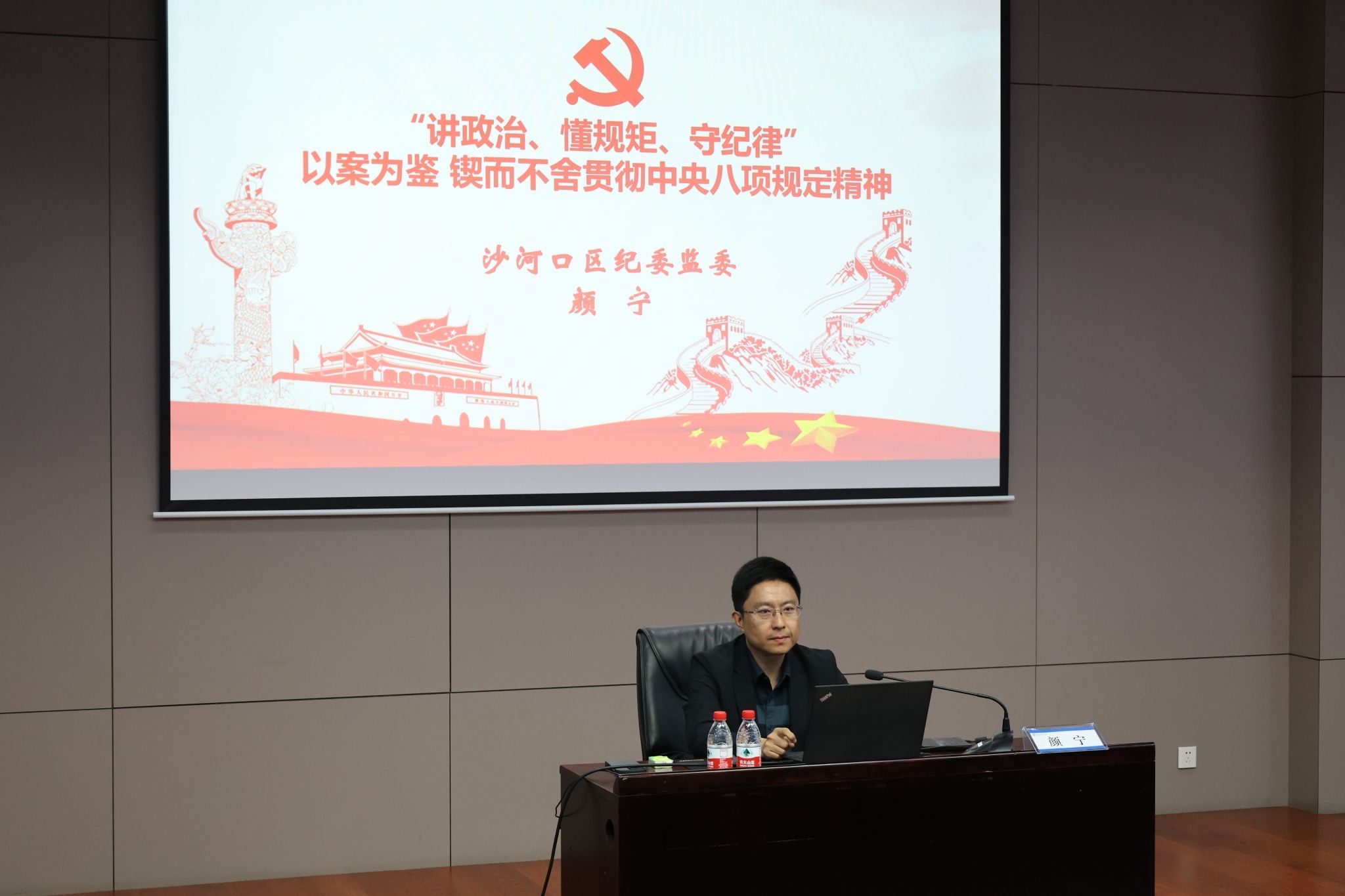 会议特邀沙河口区纪委常委、区监委委员颜宁作《“讲政治、懂规矩、守纪律”——以案为鉴,锲而不舍贯彻中央八项规定精神》专题报告。颜宁结合纪检监察工作经验,以典型案例为切入点,深刻剖析违反中央八项规定精神问题的政治本质与危害,强调党员干部需严守“底线”、远离“红线”,做到“敬畏权力、秉公用权”,自觉在监督下履职。