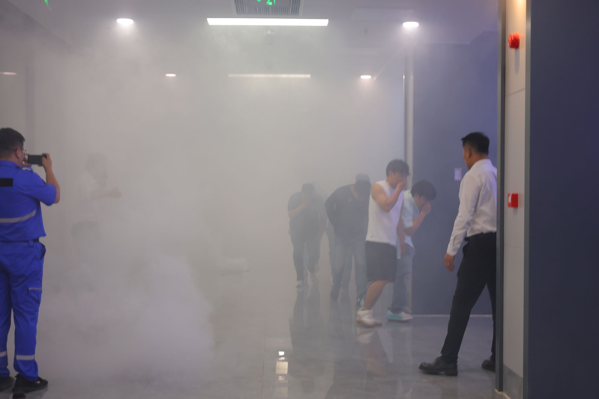 上午十点四十分,随着一阵急促的警报声响起,消防演练正式拉开帷幕。模拟场景设定为某区域因电气故障引发火灾,火势迅速蔓延。现场工作人员立即启动应急预案,并组织楼内师生有序疏散。疏散过程中,工作人员分工明确,有的负责引导师生用湿毛巾捂住口鼻,低姿前行;有的负责维持疏散秩序,确保通道畅通无阻。在大家的共同努力下,所有师生都在规定时间内安全撤离到了指定区域。