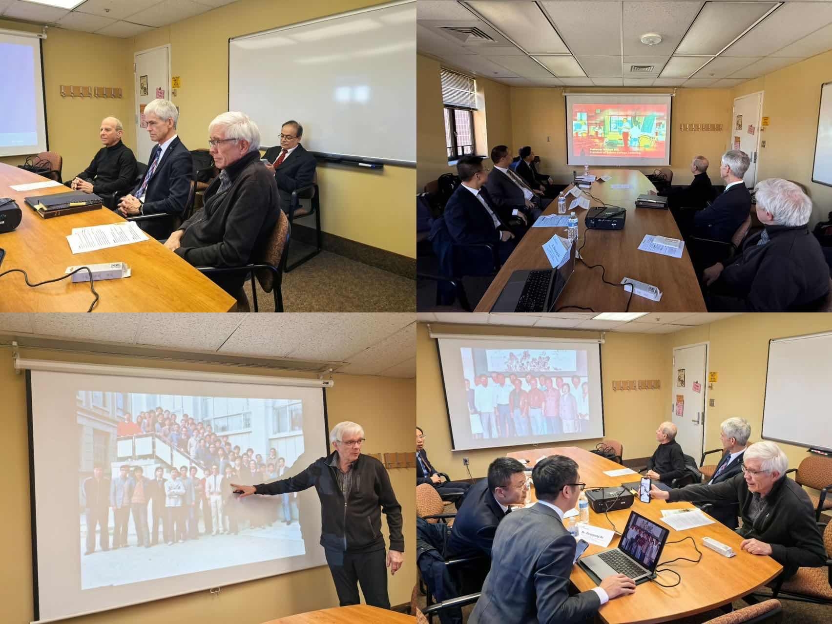 除签约外,代表团还开展了多维度交流活动。在学术交流环节,代表团与UB管理学院教师、博士生及校友围绕供应链管理、领导力培养、创新创业教育等前沿领域深入研讨,与UB“供应链分析中心”“全球领导力中心”等机构达成初步合作意向。为重温合作历史,代表团专程拜访了John Wood、G.LawrenceSanders等曾于上世纪八十年代在大连授课的资深教授,听他们讲述早期合作的创业故事,共话两校情谊传承。