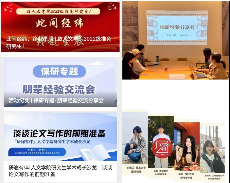 “强国有我青年说”毕业生党员去向宣传聚焦思想引领,通过呈现党员“科研报国、扎根基层、实干兴邦”的成长故事,引导学生将个人发展融入时代大局;“推免研究生风采展”侧重标杆示范,展示优秀学子升学路径与奋斗感悟,提供可感可学的奋斗参照;“研途有伴”学术成长沙龙围绕学术思维、科研方法等核心议题,帮助学生破解科研困惑、更好地满足高校科研需求;“保研经验分享会”聚焦实战指导,拆解院校选择、材料打磨、跨专业申请、面试应答等关键环节,将经验转化为可操作方法,为升学规划期学生提供清晰指引。