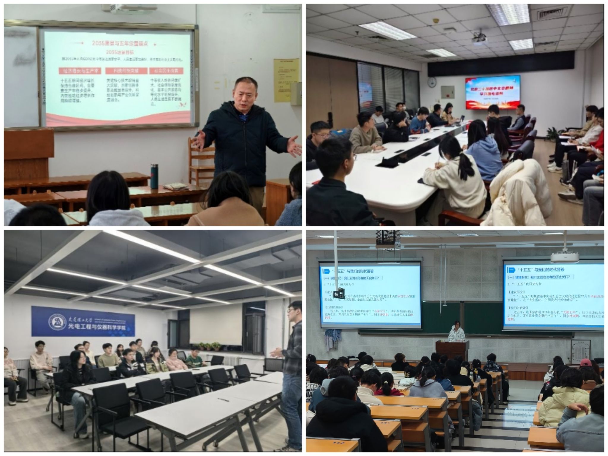 领导干部、名师专家“理论讲授式”领学。组织邀请党员领导干部、名师专家深入学生群体,以系统化、高质量的理论讲授为核心,结合学科特色、人才培养目标,带头领学、交流感悟,帮助学生准确把握理论的科学性与时代性。信息与通信工程学院邀请辽宁省委党校党建教研部副主任钟宪章教授作专题报告,从全会精神的核心内容、战略部署等方面进行系统解读,并结合信息通信行业发展趋势,进一步引导学生深化对全会精神的理解;未来技术学院执行院长卢湖川教授深入学生群体带头领学,讲授《“十五五”期间青年何为》专题辅导报告,紧密结合“十五五”规划纲要与人工智能领域的前沿发展,让理论学习与学生成长发展精准对接。