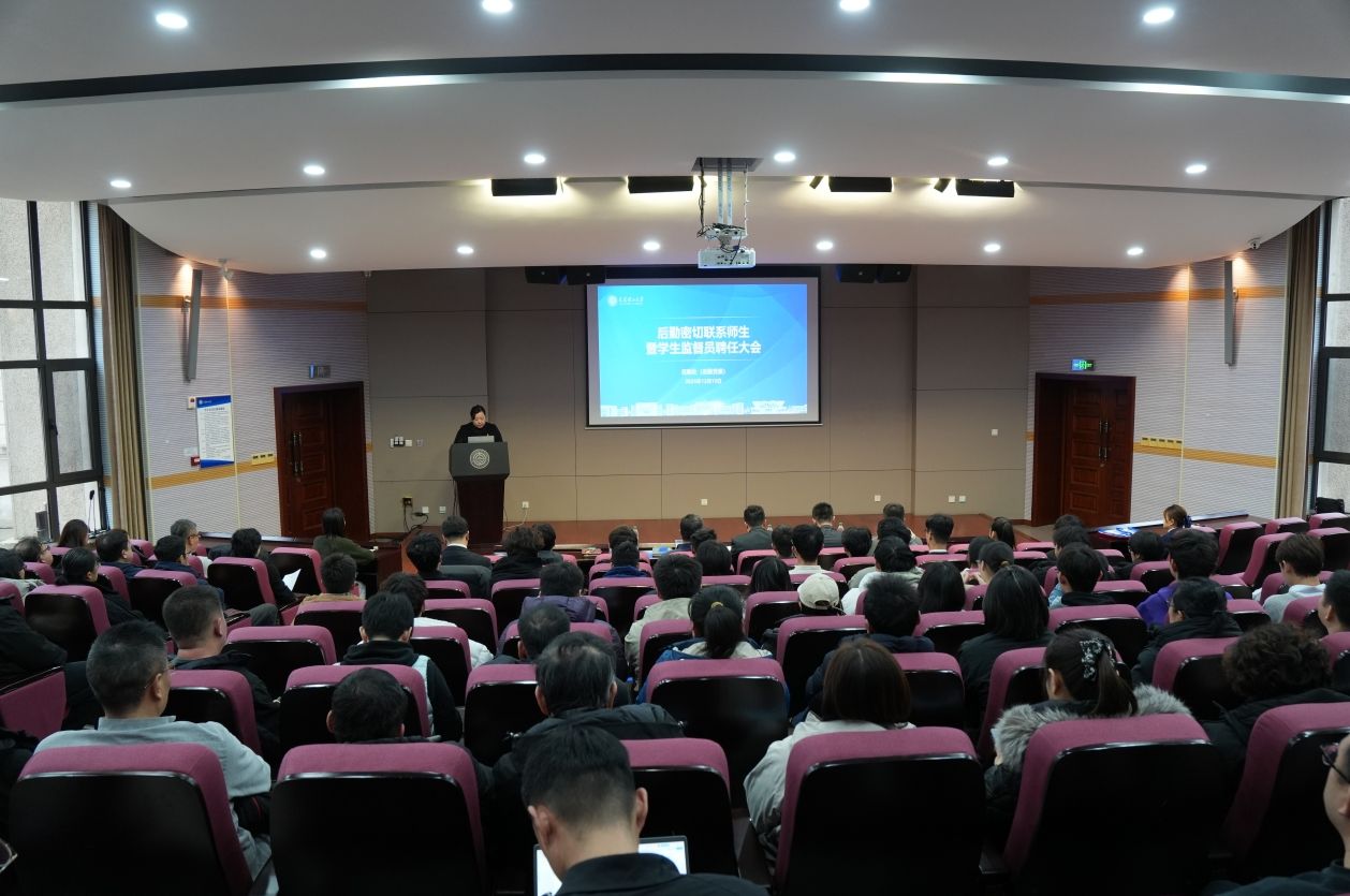 为构建多元主体协同治理的后勤服务监管体系,充分发挥学生在后勤服务监督中的重要作用,经校团委推荐、学生自主报名等环节,后勤处最终选聘出39名优秀学生组成第一届后勤服务学生监督员队伍。12月19日,我校后勤处组织召开后勤密切联系师生暨学生监督员聘任大会。后勤处处长石成田、后勤党委书记杨玉林,校团委书记赵显嵩,后勤处全体管理人员与第一届后勤服务学生监督员代表参加此次会议。会议由后勤党委副书记、副处长兼纪委书记田琳主持。