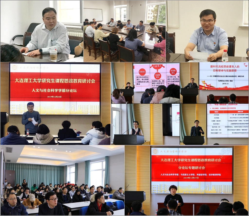 自2019年9月,人文学部召开“课程思政”建设工作布置会以来,学部先后组织召开“加强教材建设工作会议”、“大连理工大学研究生课程思政教育研讨会人文与社会科学学部分论坛、专题研讨会、总结会”等研讨会议,学部武文颖教授受邀前往学校11个学部学院做“课程思政”教学示范专题报告,为课程思政建设指明方向。