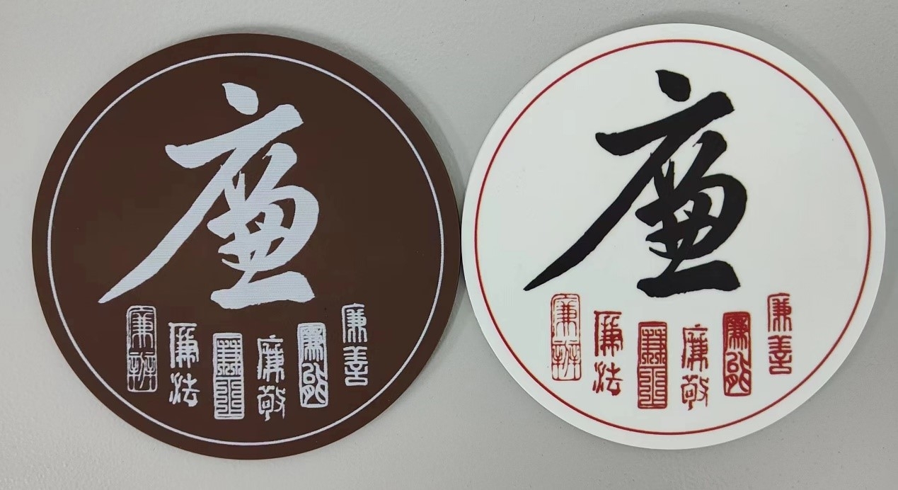 为持续推进以廉育人、引导党员干部教师努力践行忠诚干净担当,校区纪工委从参展优秀作品中遴选出莱斯特国际学院2021级本科生程鑫的篆刻“六廉”——廉善、廉能、廉敬、廉正、廉法、廉辨,生命科学与药学学院2021级本科生李怡美的书法作品“廉”,精心设计制作廉洁文化杯垫,向校区全体党员干部教师发放。