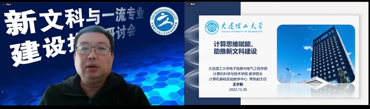 在下半场“新文科”建设研讨会中,计算机科学与技术学院副院长王宇新副教授以“四新”建设的核心内涵为出发点,结合我校新文科建设的实际方案,作题为“计算思维赋能 助推新文科建设”的主旨报告。