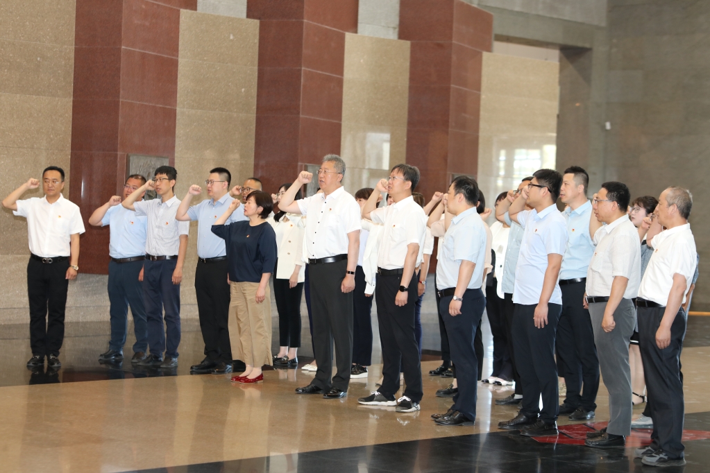 全体人员来到辽沈战役纪念馆序厅,郭玉铸和辽沈战役纪念馆副馆长龚兵共同为“思想政治教育实践基地”揭牌,全体同志一起重温入党誓词,铿锵有力的宣誓声响彻大厅,表达了坚定的信仰信念和矢志奋斗的信心决心。