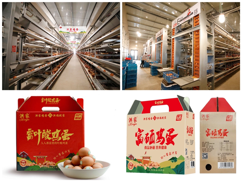 大连洪家畜牧有限公司是一家专业化蛋鸡养殖企业,产供销、物流服务一体化经营,拥有自动化生产工艺,智能化环境控制系统,多次成为“全运会”“达沃斯”等会议的特供蛋品。洪家富叶酸鸡蛋的叶酸含量为每100克含120-140微克,比普通鸡蛋高3-4倍,同时含有丰富的维生素E、B1、B2、B12、微量元素锌,叶黄素是普通鸡蛋的2-3倍,是集营养更加全面的优质蛋品。洪家富硒鸡蛋是通过在鸡饲料中添加有机硒,在蛋鸡体内转化后,含量可达每公斤鸡蛋含硒0.2-0.5毫克,并且是一种有机硒,吸收率比无机硒高1.6倍。