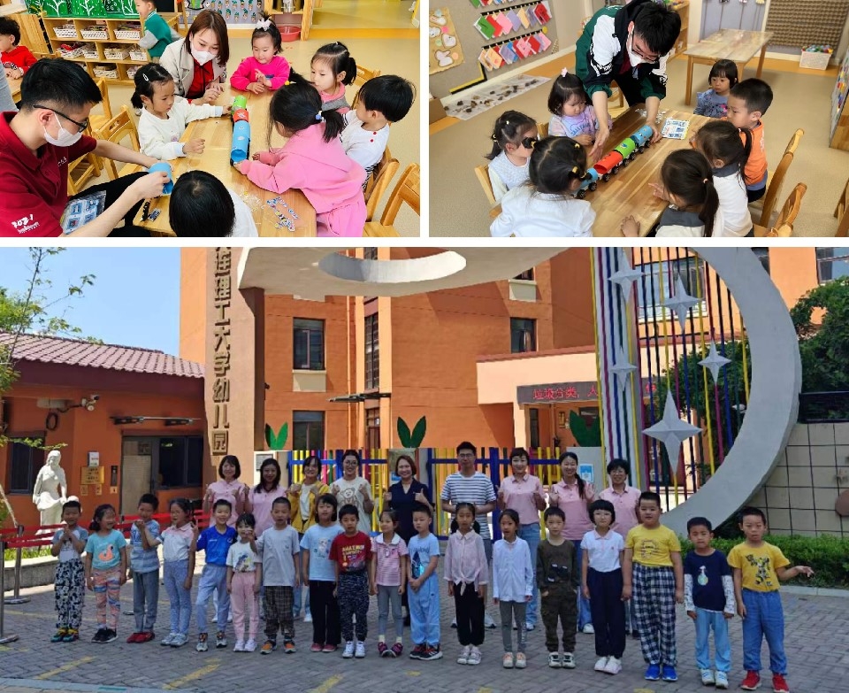 学院学生党员两次前往沙河口区第十七幼儿园、大连理工大学附属幼儿园开展科技探索小课堂,与幼儿园的孩子们一起制作万花筒、电动小火车,以动手实践的方式了解平面镜成像、火车运动原理,激发孩子们的好奇心、想象力、探求欲,帮助幼儿园的孩子们感受科学的魅力。