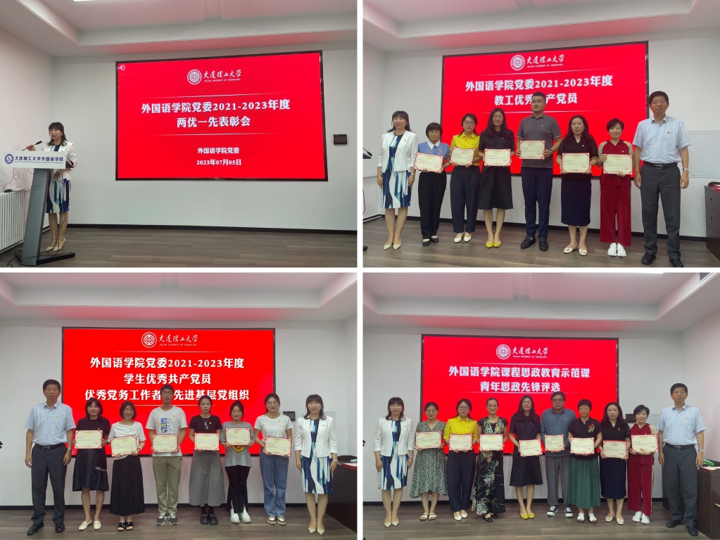 为了庆祝中国共产党成立102周年,7月5日,外国语学院党委在海晏楼举办2021-2023年度“两优一先”表彰大会暨庆“七一”主题党日。会议包括三部分内容:“两优一先”表彰、党委书记“七一”专题党课以及“课程思政”示范课经验交流。学院班子成员、全体教师党员以及学生代表参加,大会由党委组织员潘迪主持。